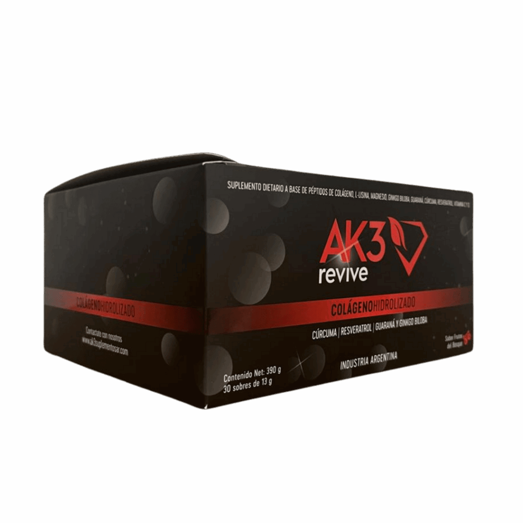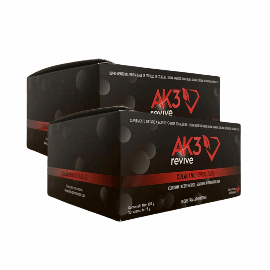 O suplemento AK3 Revive combina colágeno hidrolisado com ativos naturais para restaurar sua vitalidade, elasticidade e bem-estar.